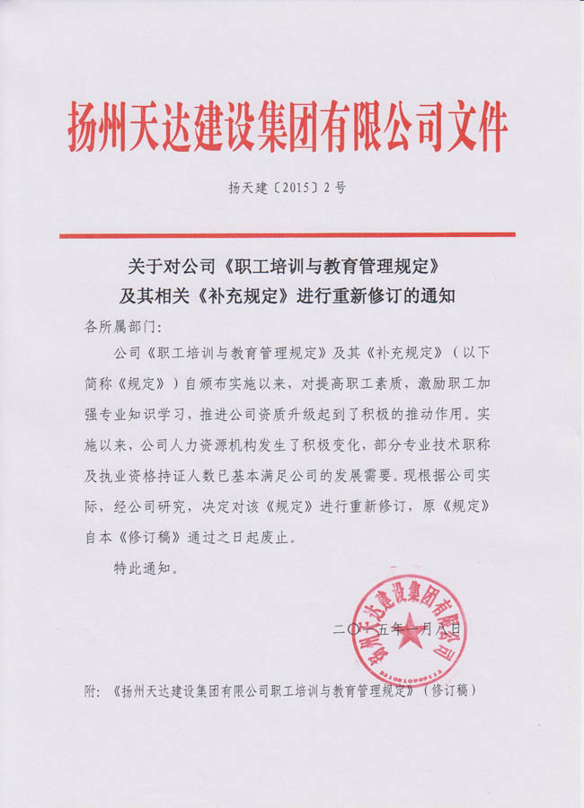 关于对公司《职工培训与教育管理规定》及其相关《补充规定》进行重新修订的通知